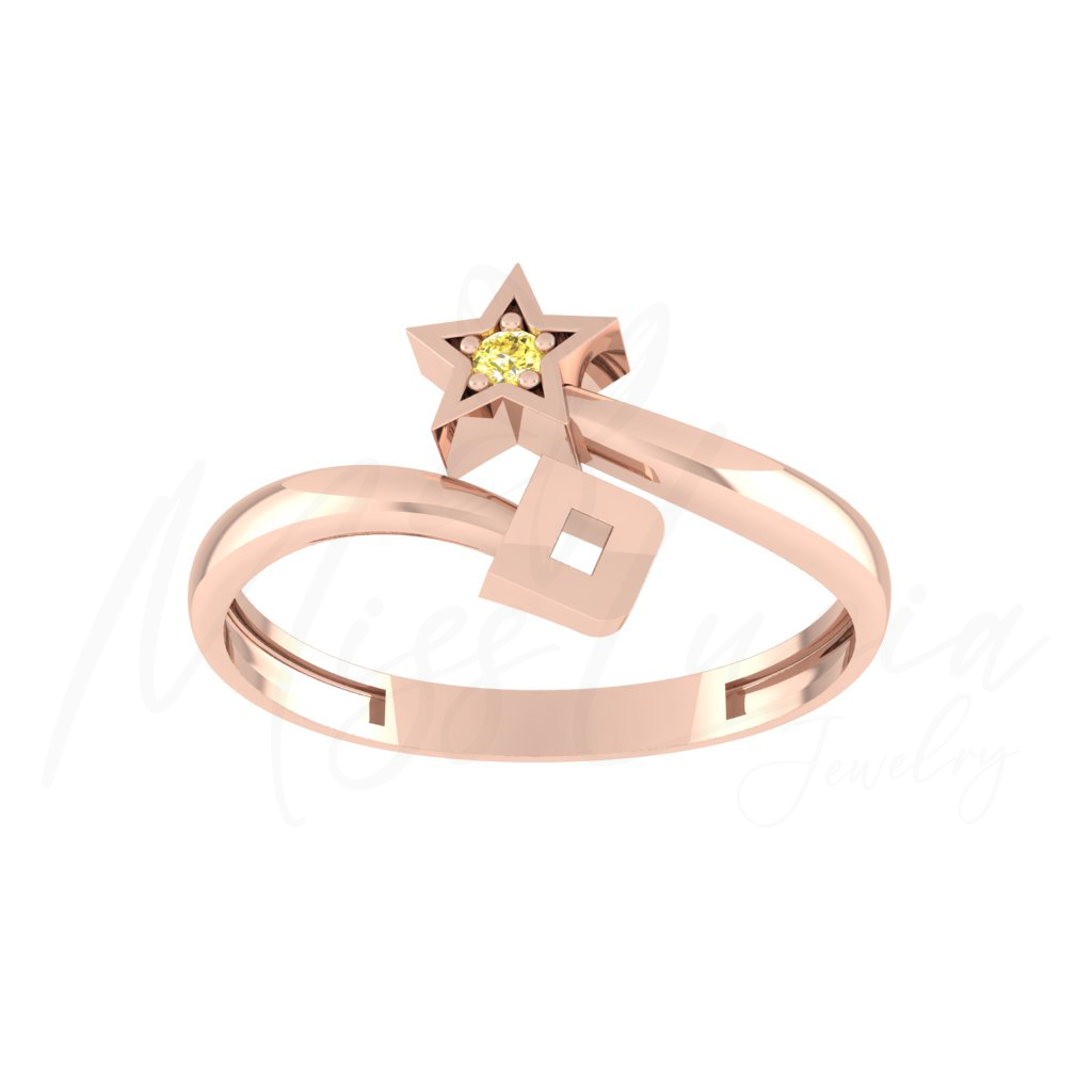 D Altın Yıldız Minimal Yüzük