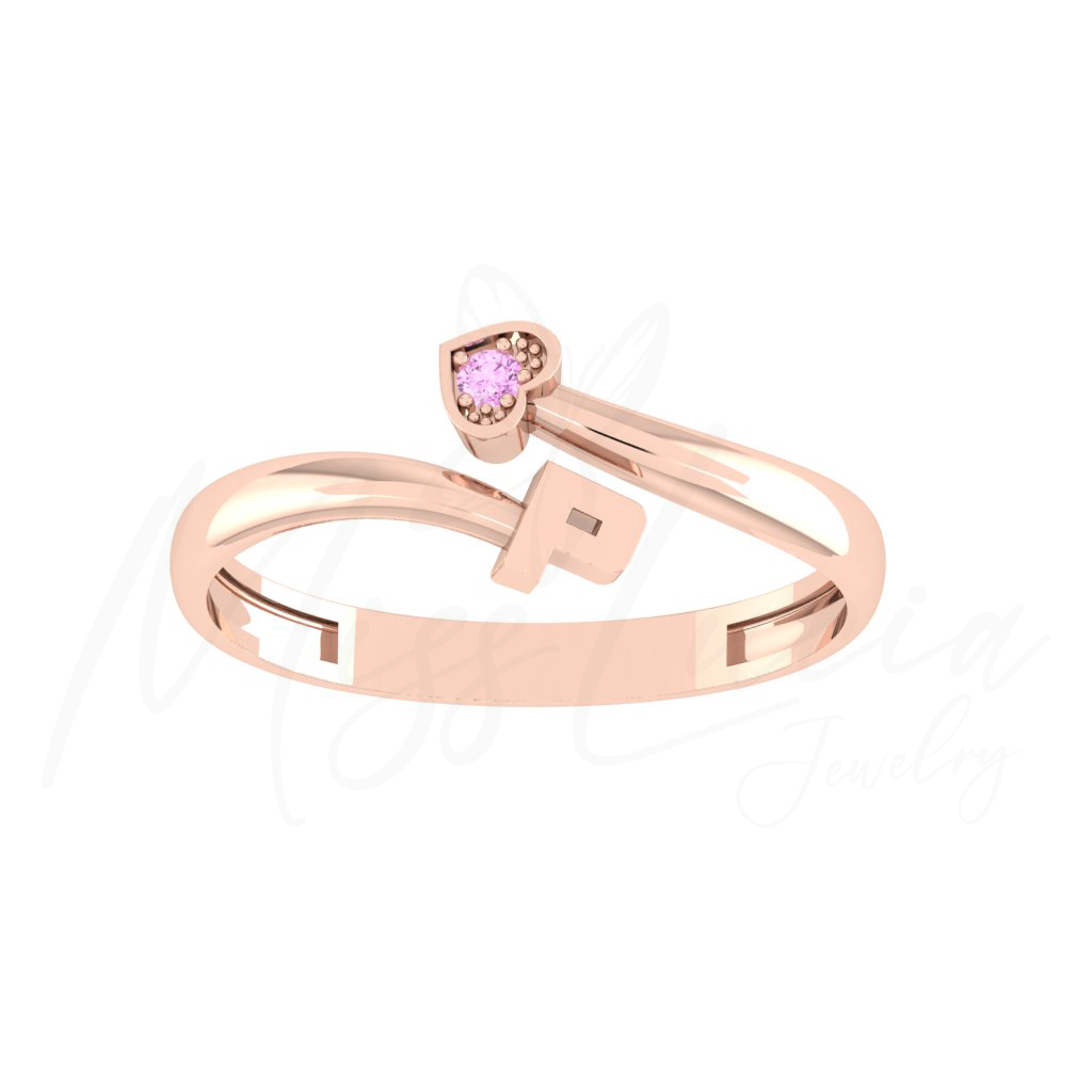 P Altın Kalp Minimal Yüzük