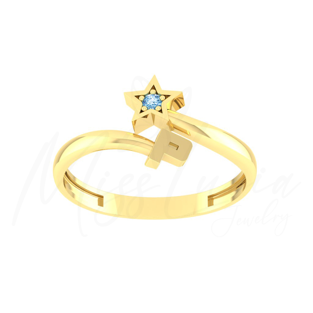 P Altın Yıldız Minimal Yüzük